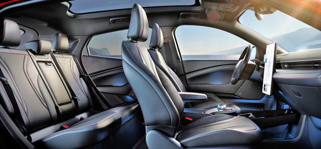 Access and start-up are provided using a mobile-phone app, with back-up means, should the mobile unit’s battery die; fortunately, it can be recharged using the pad in the centre console. Featuring the most up-to-date connectivity that is also upgradable, is not dissimilar to the Tesla offering. While the Mach-E does possess a few Mustang styling cues, remove the badges and you could be looking at and driving a new Tesla, which will provide either a genuine comfort zone for some owners, or bemusement for others.