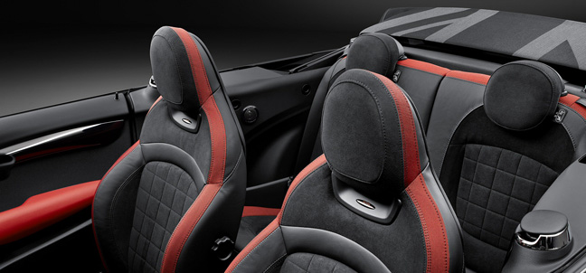 Just as important as the vigour with which the MINI JCW Convertible fires itself up the road are the measures it takes to stay on it. As standard, buyers get sports suspension optimised for high performance and agile turn-in response as well as precise steering. Another standard feature is the high-performance brake system developed exclusively for John Cooper Works models. Designed in collaboration with Brembo, the 4-piston fixed caliper disc brakes are particularly resistant to fade. A 6-speed manual gearbox is standard, but as usual with MINI models, there's an 8-speed Steptronic auto transmission available as an option and you can change gear using steering wheel paddles.